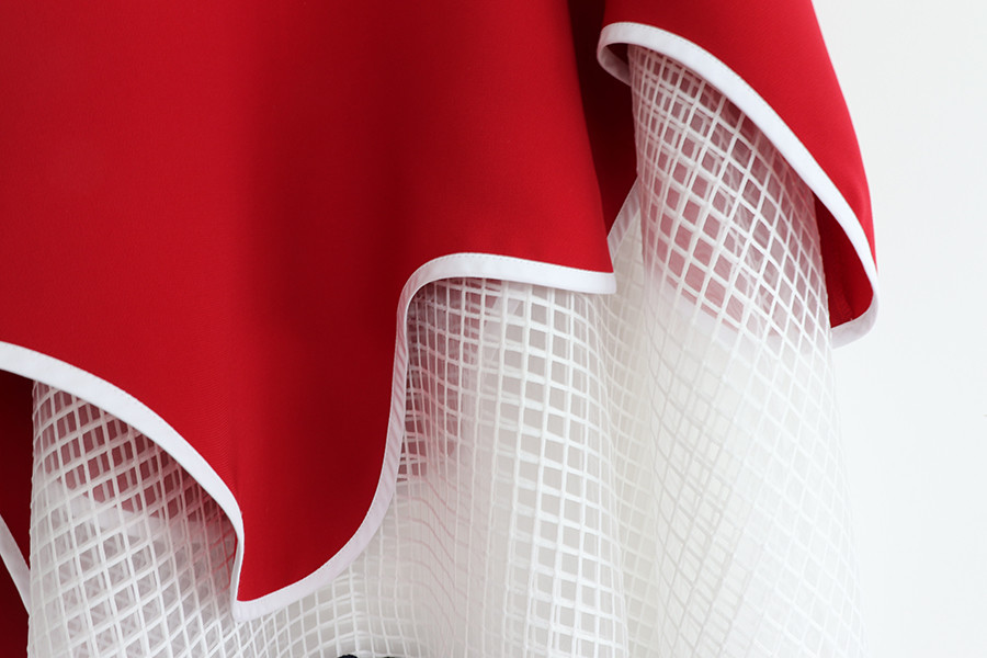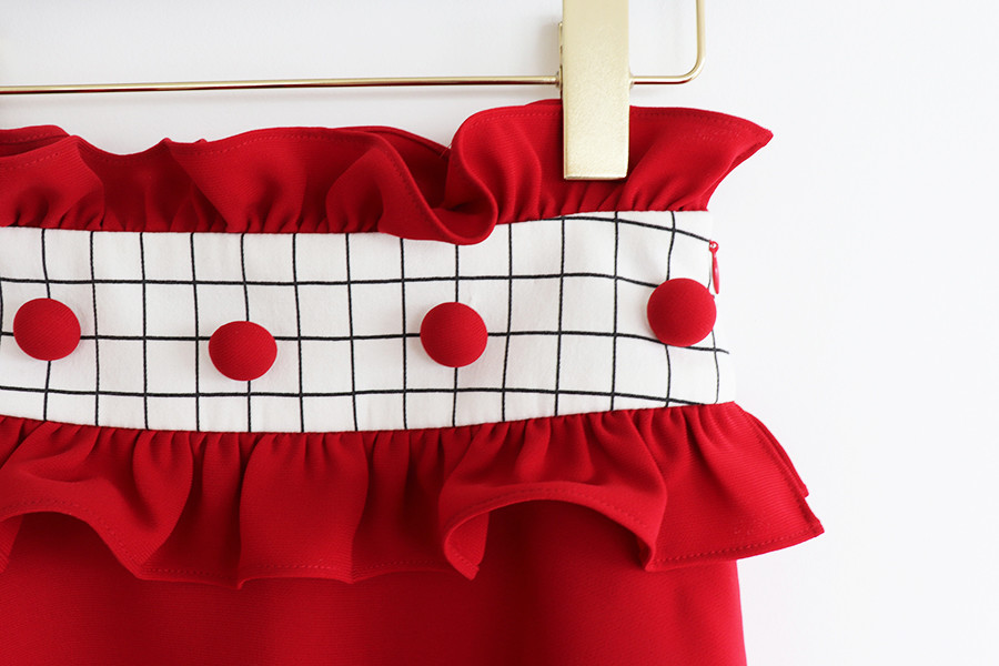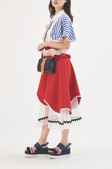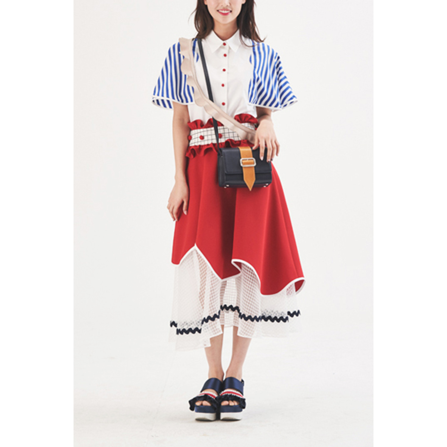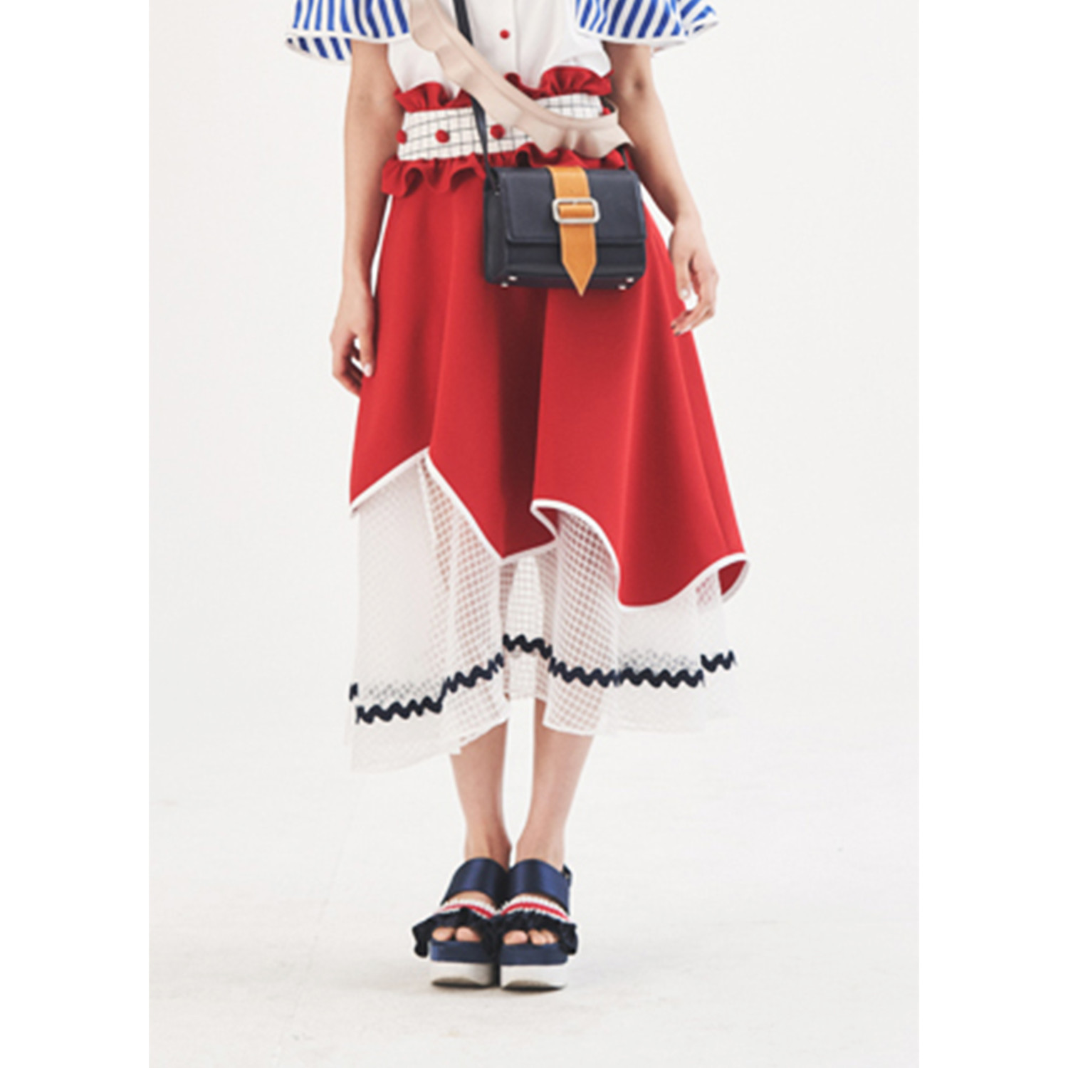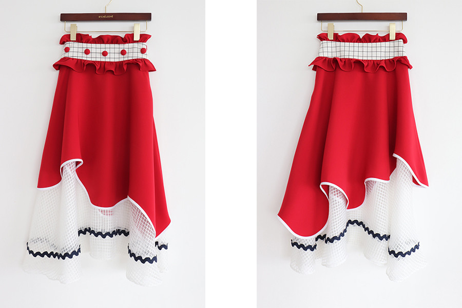 구불거리는 언발라스 물결라인이 레이어드 된 편안한 착용감의 A라인 스커트입니다.