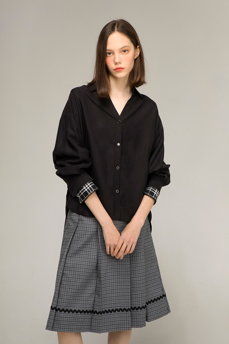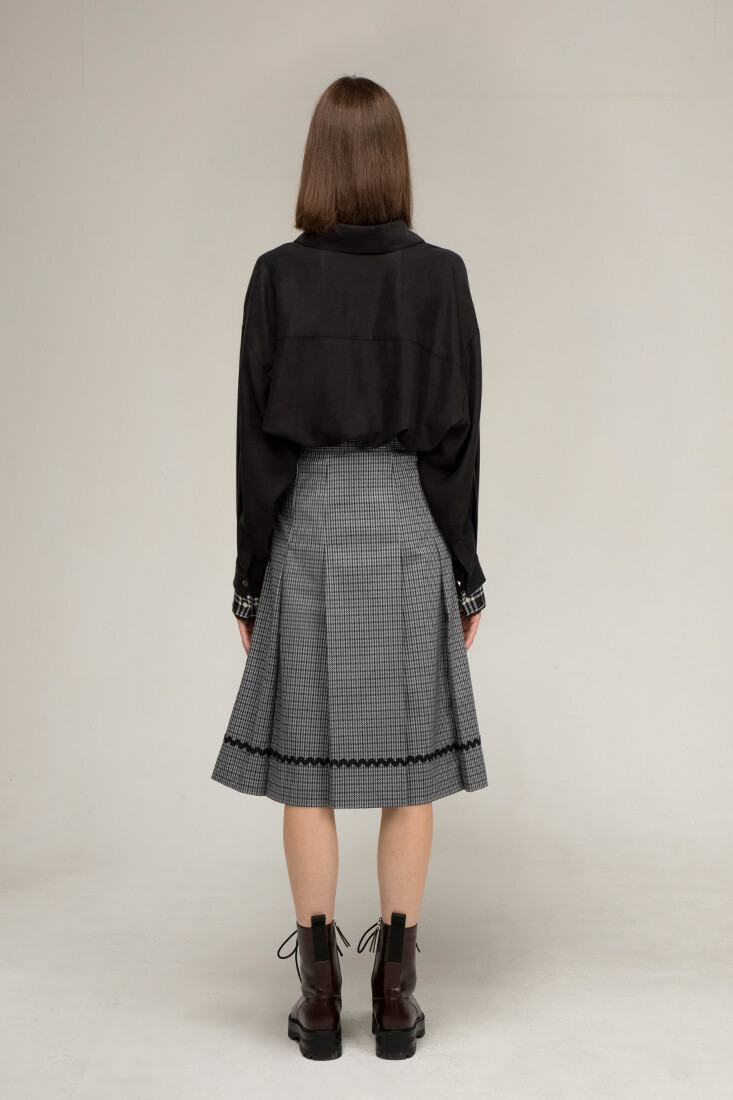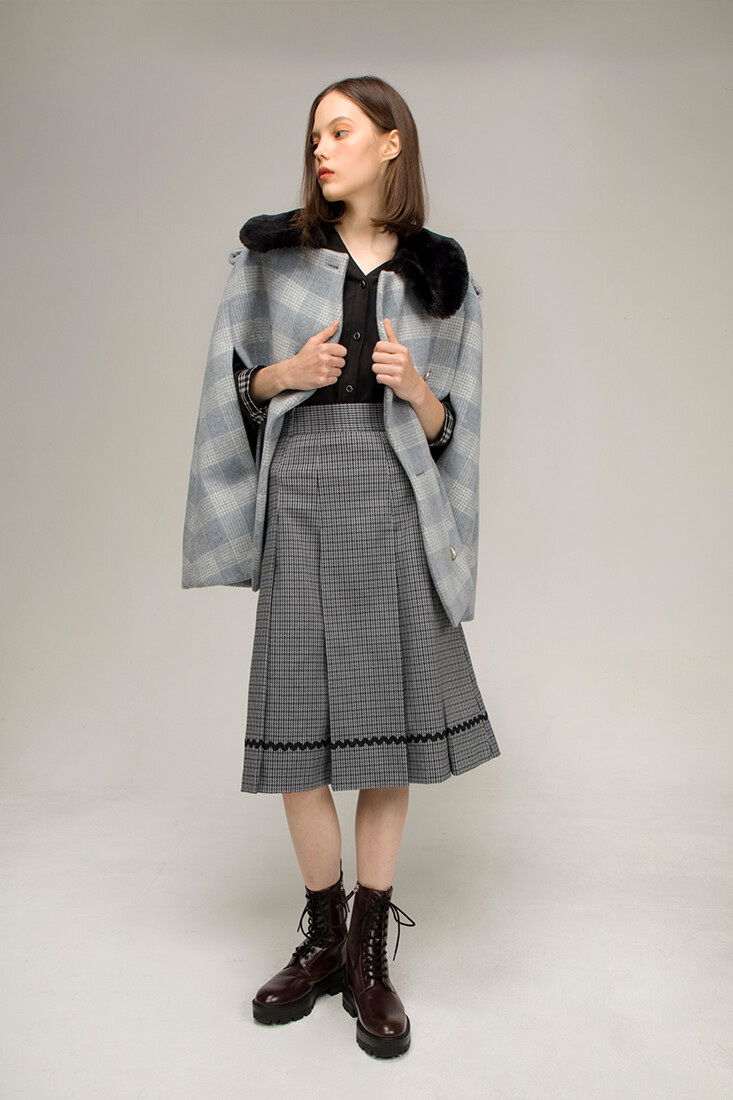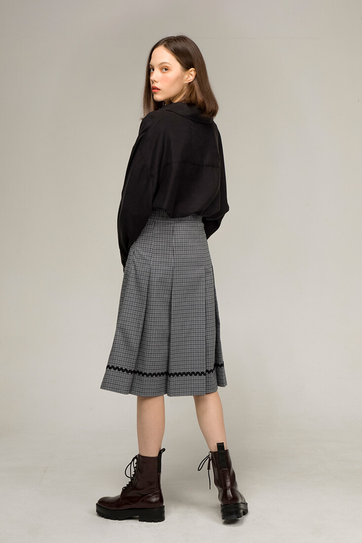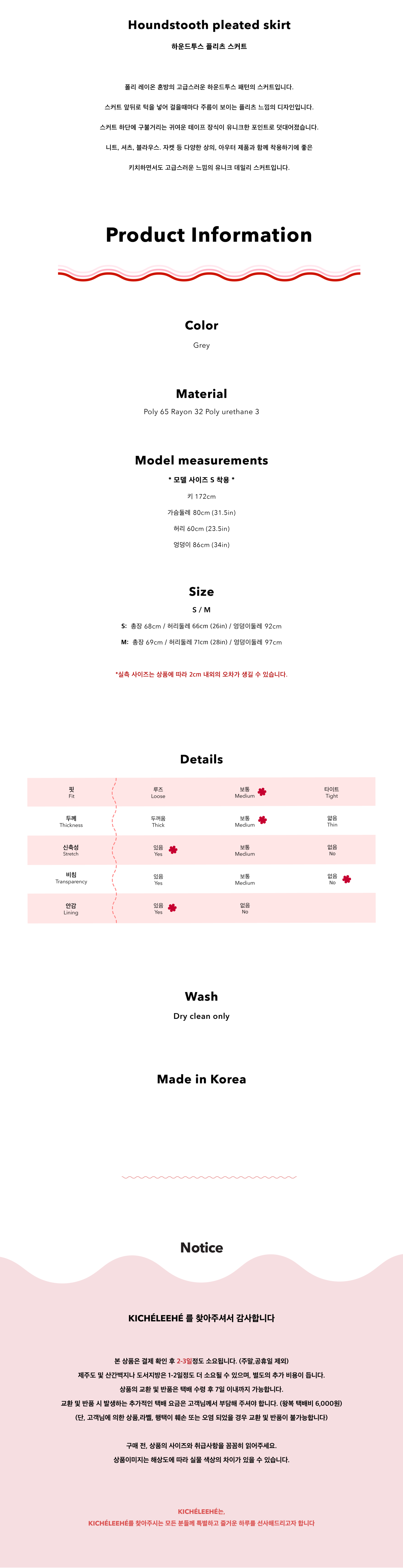 폴리 레이온 혼방의 고급스러운 하운드투스 패턴의 스커트입니다.
