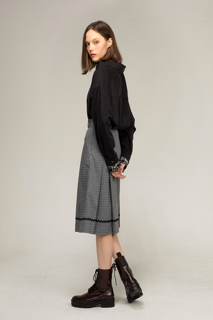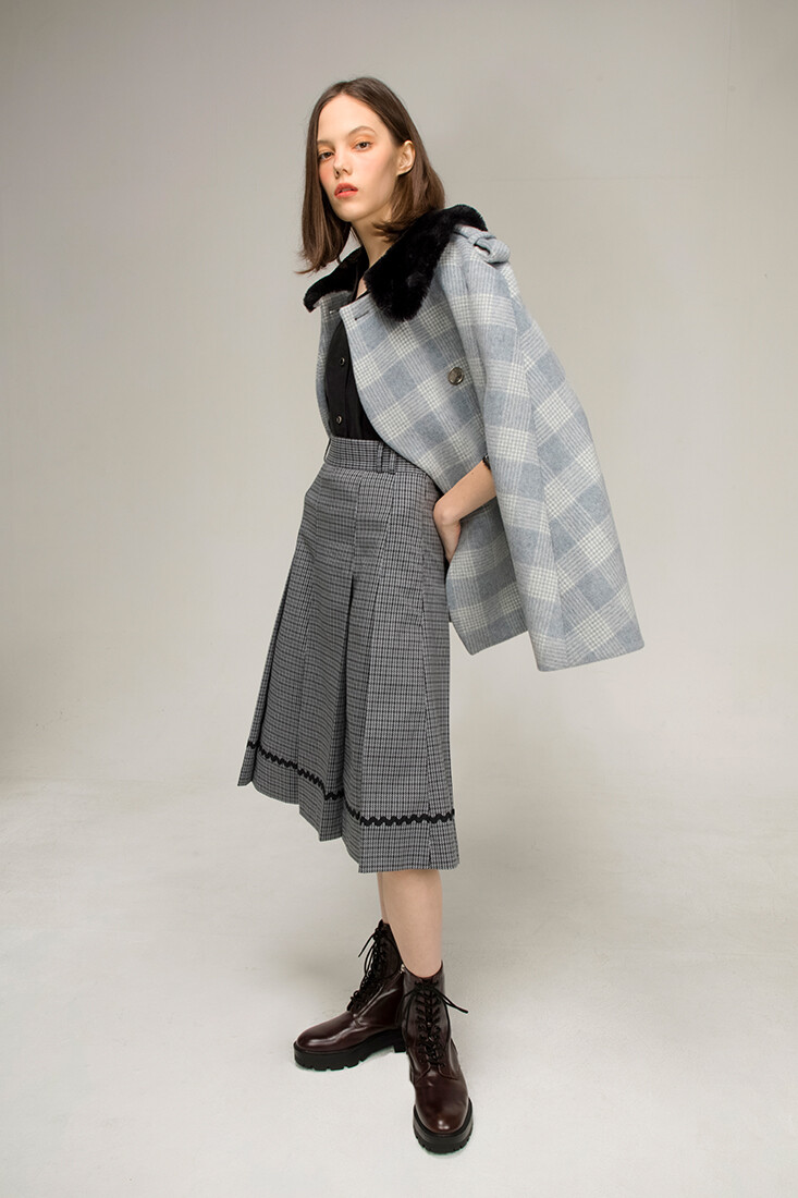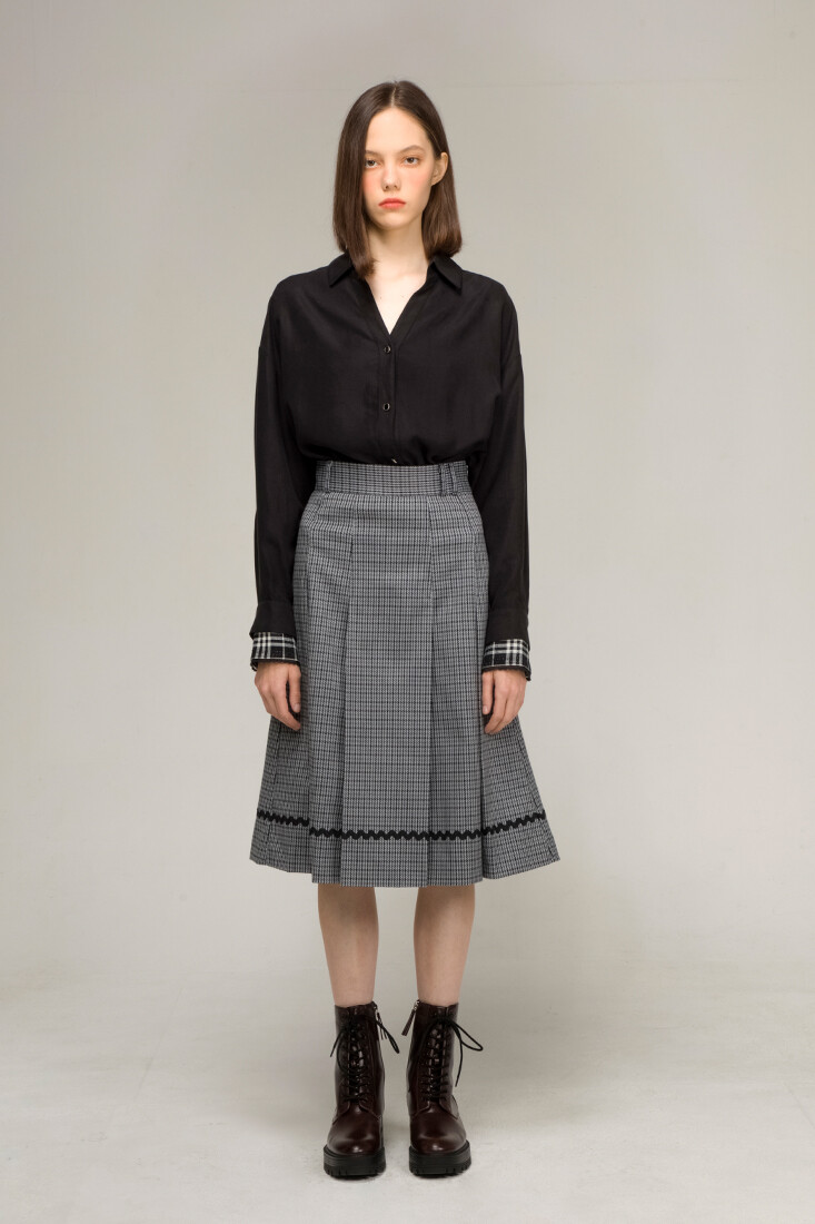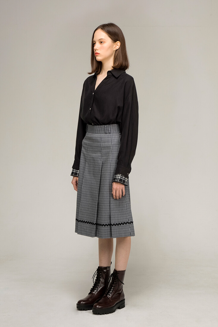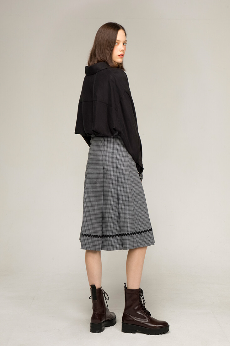 스커트 앞뒤로 턱을 넣어 걸을때마다 주름이 보이는 플리츠 느낌의 디자인입니다.
