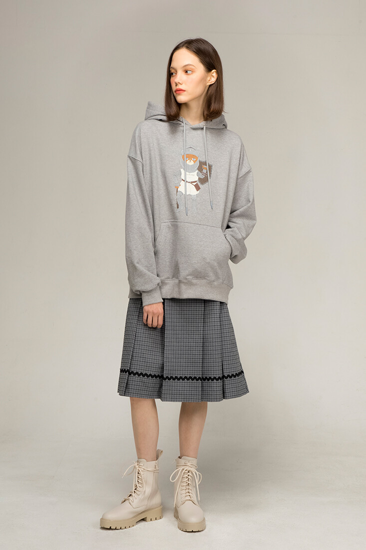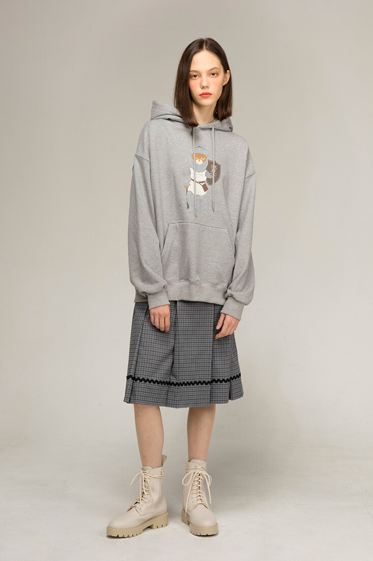 스커트 하단에 구불거리는 귀여운 테이프 장식이 유니크한 포인트로 덧대어졌습니다.