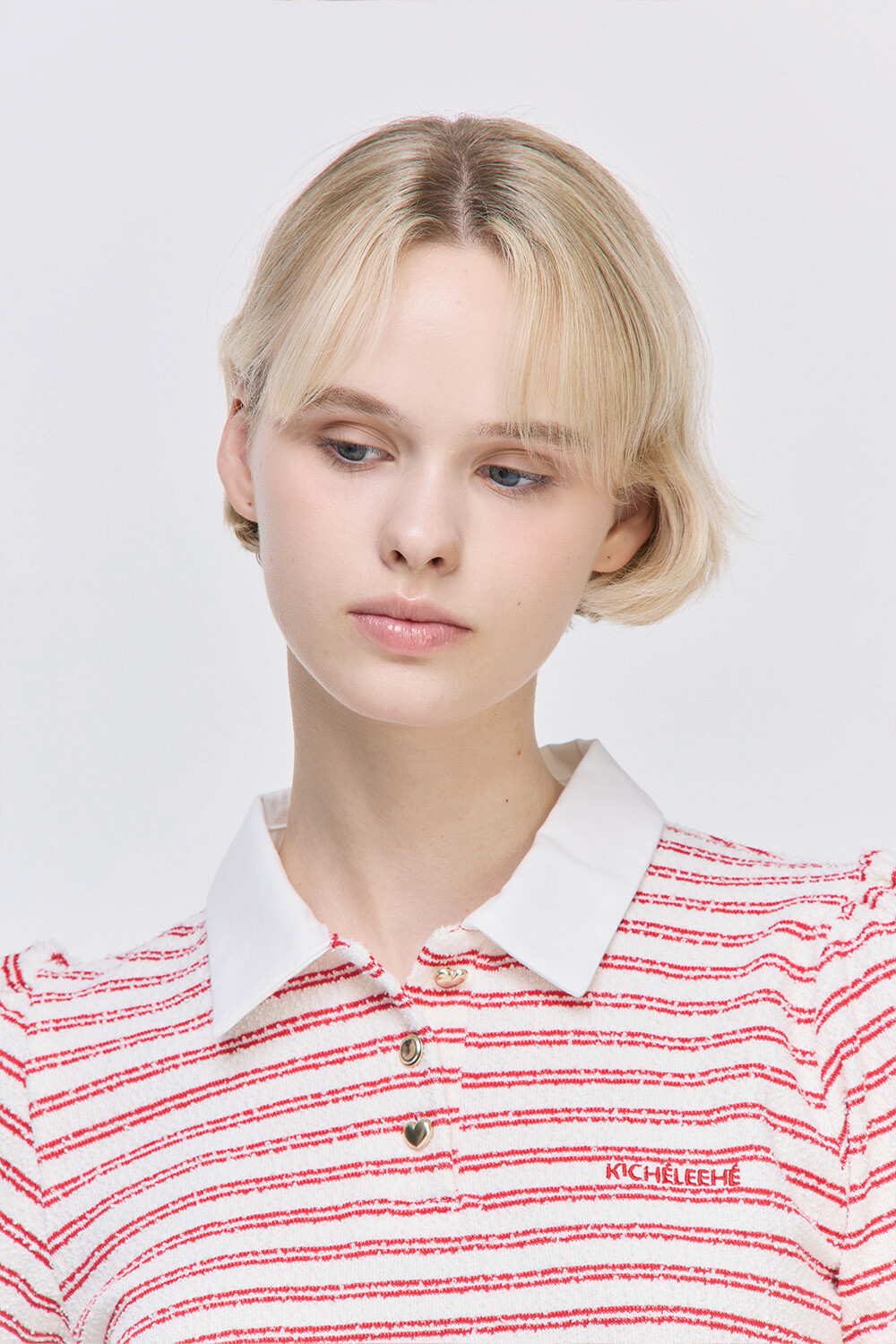 부드러운 코튼혼방 소재의 편안하면서 캐주얼한 느낌의 스트라이프 피케 셔츠입니다. 키셰리헤 자수 로고와 유니크한 금속 단추들이 포인트인 디자인입니다.