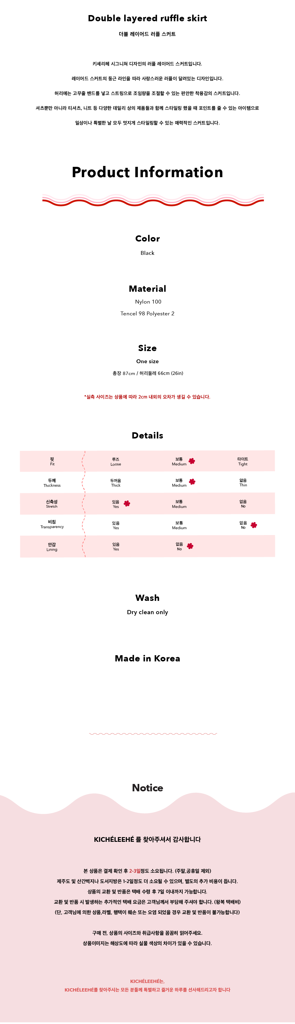 키셰리헤 시그니쳐 디자인의 러플 레이어드 스커트입니다.
