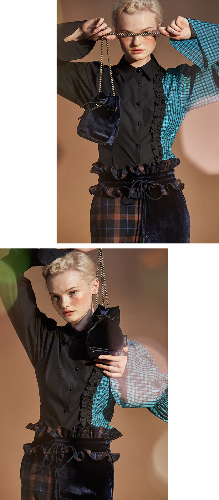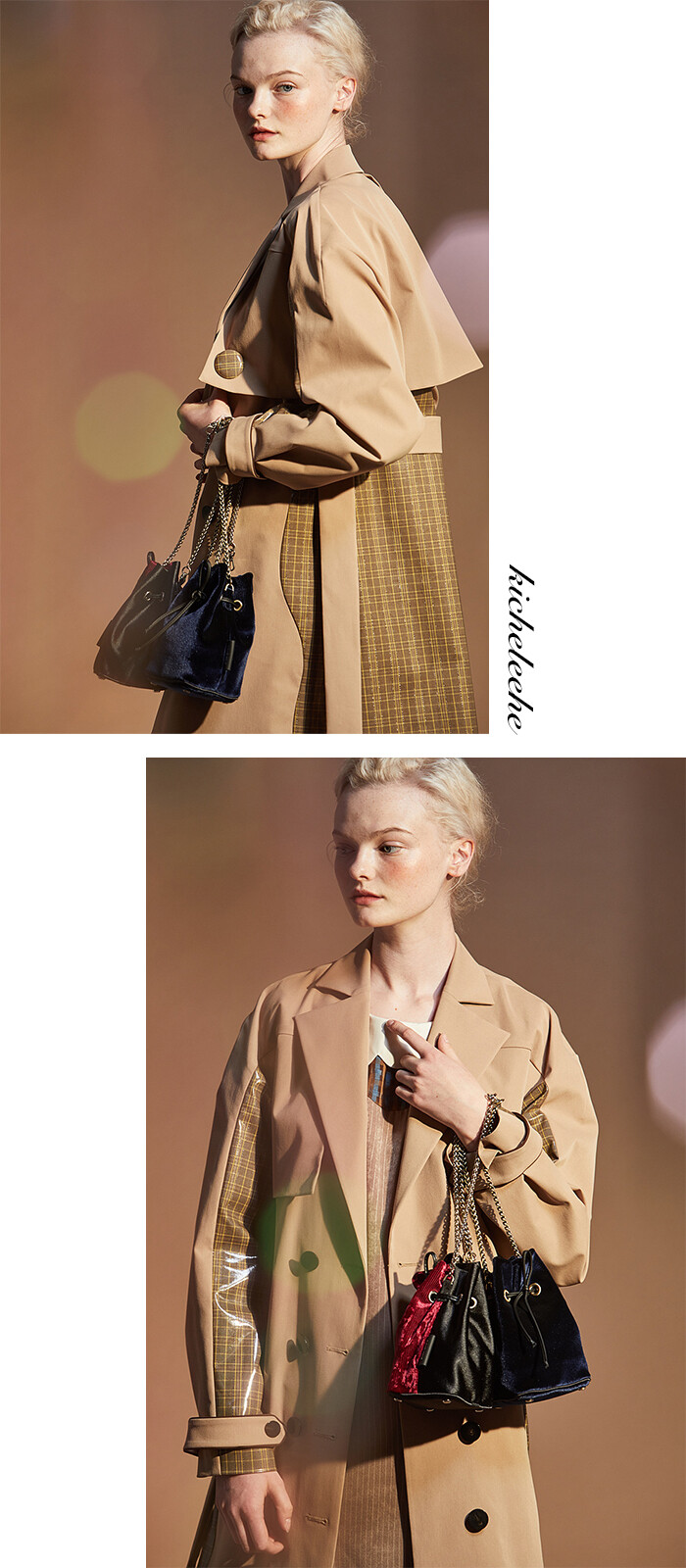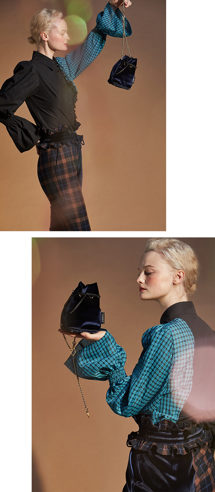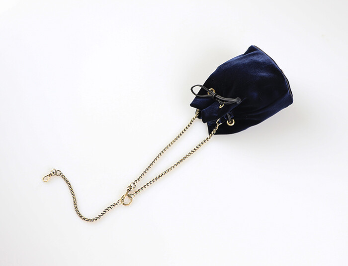 Navy three-way bracelet handle bucket bag