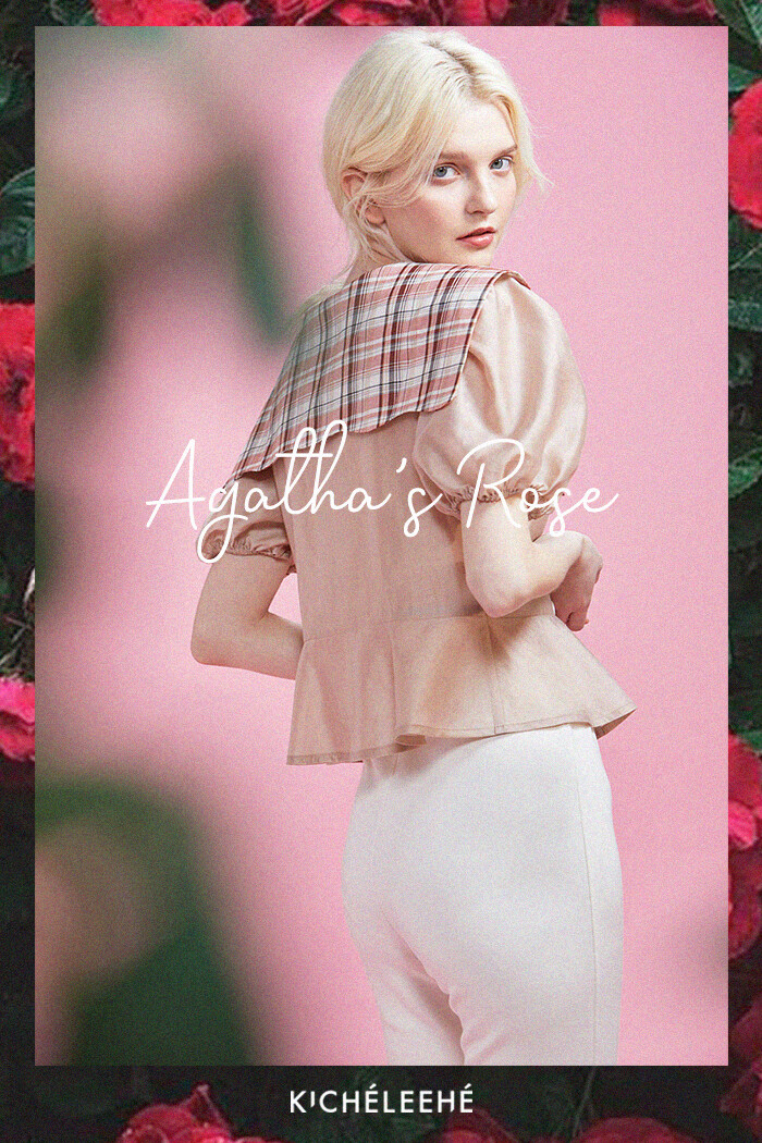 유니크함과 캐주얼함을 더해주는 체크 세일러 카라의 뒷부분은 키셰리헤의 시그니쳐 물결 라인으로 디자인되었습니다.