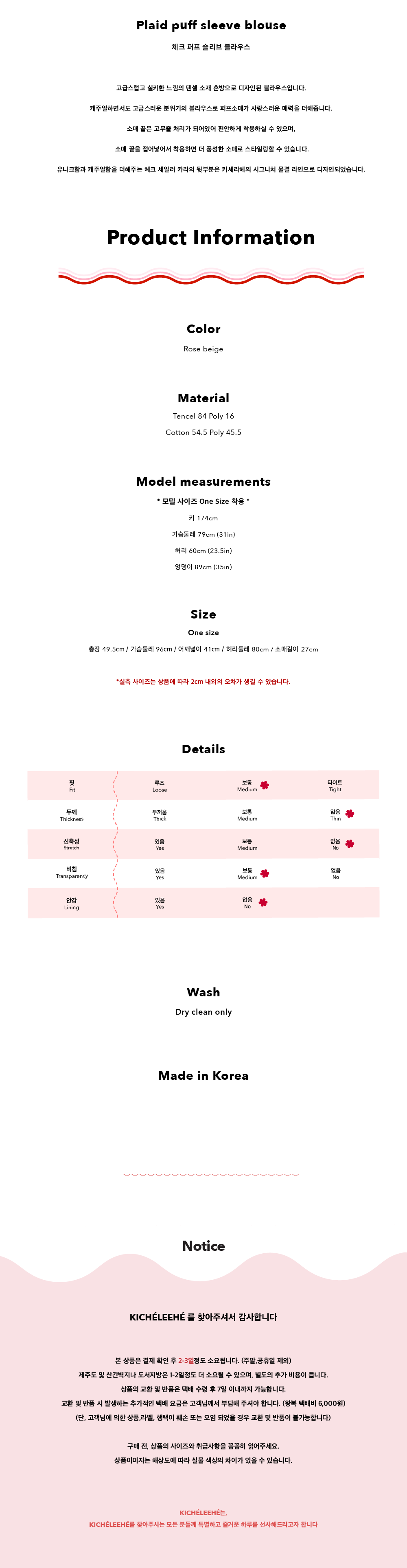 캐주얼하면서도 고급스러운 분위기의 블라우스로 퍼프소매가 사랑스러운 매력을 더해줍니다.