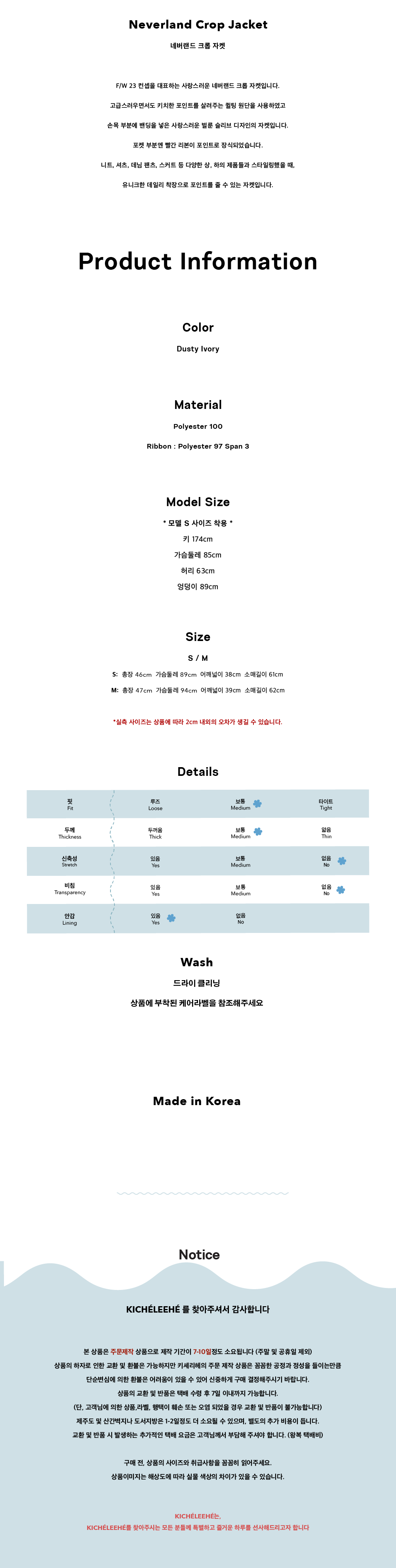 F/W 23 컨셉을 대표하는 사랑스러운 네버랜드 크롭 자켓입니다.
