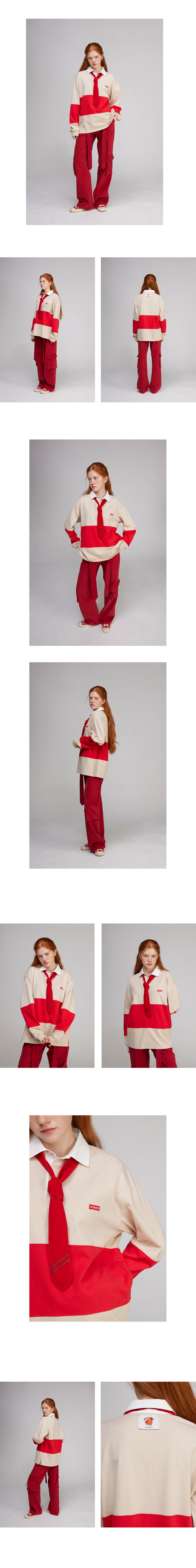 ‘키셰리헤’와 ‘서울 앵무새’의 FW23 콜라보레이션 오버핏 럭비 셔츠 디자인으로 레트로하면서도 강렬하고 키치한 칼라 조합과 함께 로고 자수가 포인트로 수놓아져있습니다. 세트 상품으로 구성된 넥타이는 스타일링에 따라 유니크한 포인트로 착용하실 수 있습니다. 톡톡한 감촉의 착용감이 우수한 프리미엄 코튼 100% 원단을 사용했습니다. 남녀 모두 예쁘고 편안하게 착용할 수 있도록 고안된 디자인으로서 여성분은 체형에 따라 세미 오버핏 또는 오버사이즈 핏의 디자인입니다. 남성분은 체형에 따라 세미 오버핏 또는 기본핏으로 편안하게 착용하실 수 있습니다.